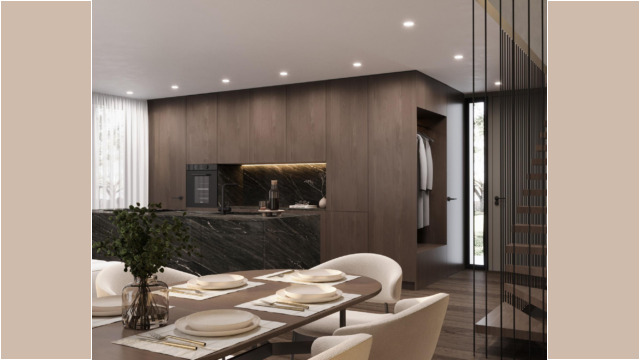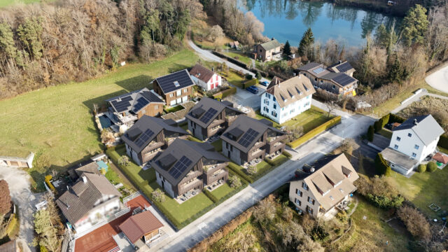 Die Architektur präsentiert sich klar, zeitlos und hochwertig. Grosszügige Wohnräume, lichtdurchflutete Fensterfronten und elegante Materialisierungen verleihen jedem Haus eine besondere, warme Exklusivität.